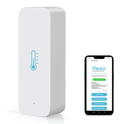 Experience peace of mind with Climate Pal by Keep Connect. Powered by just 2 AAA batteries, this innovative smart sensor monitors temperature and humidity on a regular schedule you set. Customize your detection thresholds, receive instant SMS or email notifications, and never be caught off guard by sudden climate changes again.